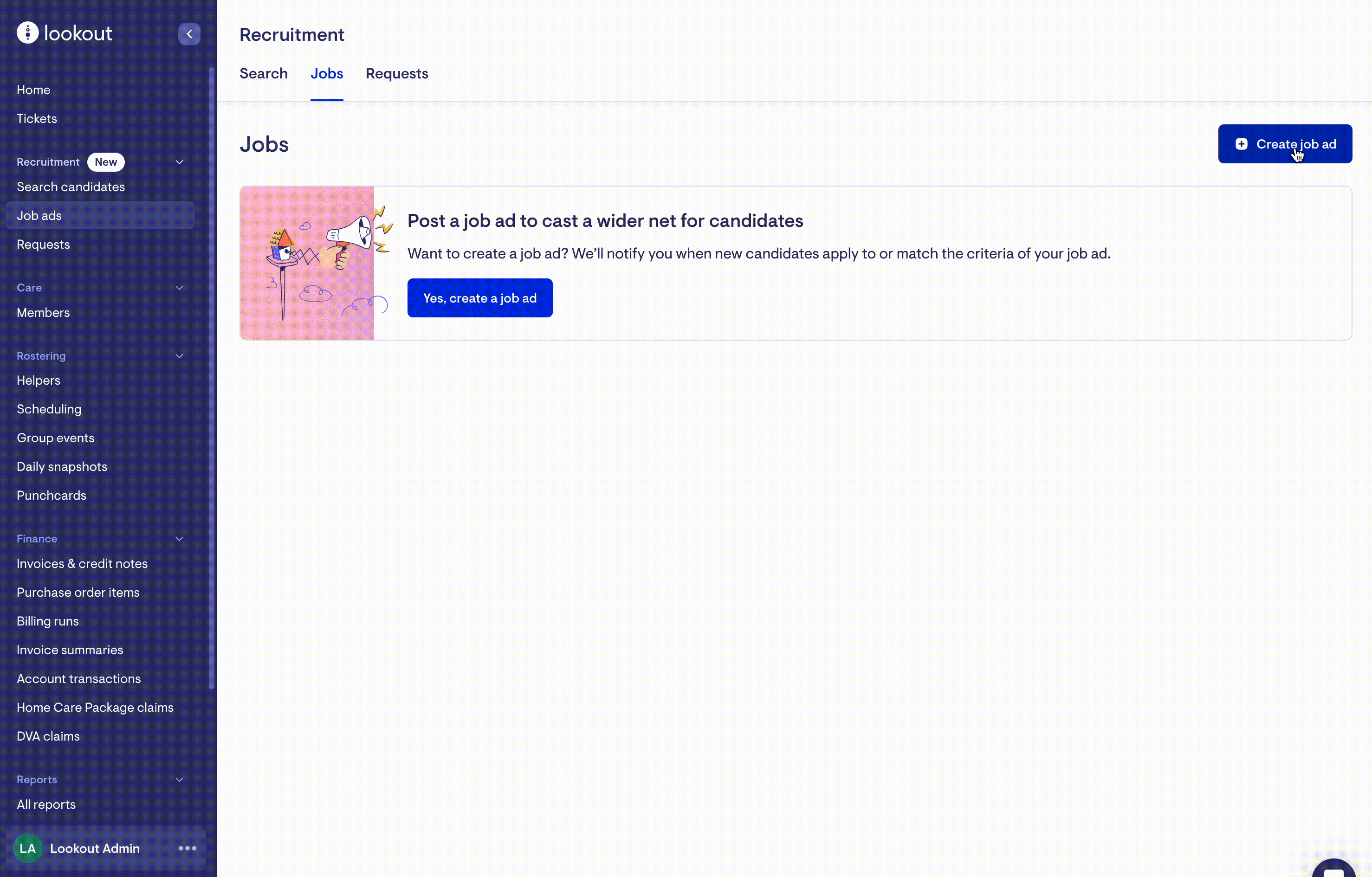 They’ll need to assign a new access role to you called ‘recruitment management’ - this allows you to post job ads, request interviews and hire candidates. If you or the administrator encounter any issues, please reach out to the Lookout support team and we will assist.