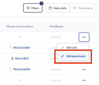 This form can be assessed by clicking the three dots to the far right of a visit and then selecting Edit punchard.