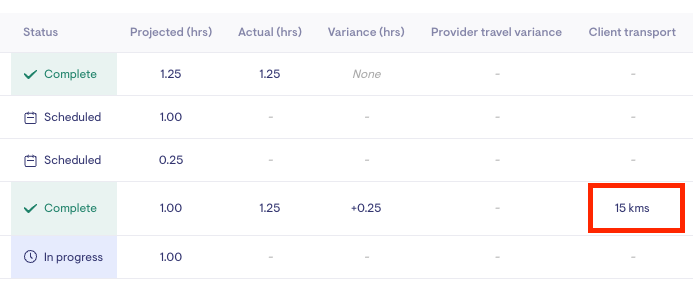 Client transport is any travel that a Care Worker does during a client visit, such as community access. The value inputted by the worker on checkout for client transport will appear on the Punchcards screen.