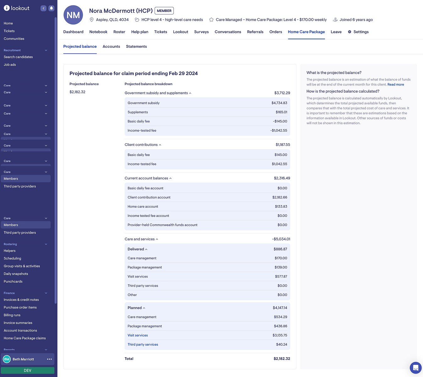 We have added support for the Basic Daily Care Fee (BDF) for Home Care Package clients in Lookout.