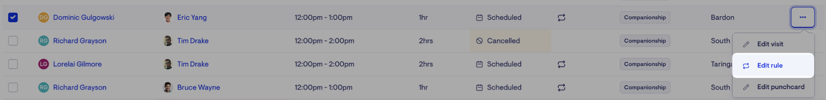 Select 'Edit Rule' from Daily visits or Punchcard view