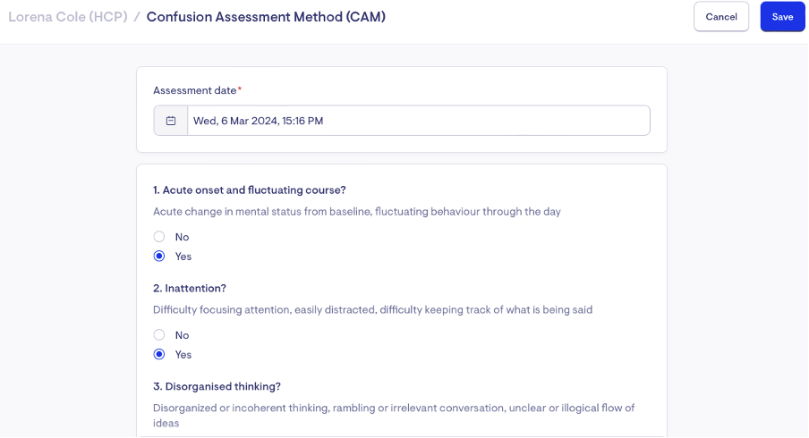 💬 The Focal Assessment add-on is required to complete a Confusion Assessment Method (CAM).