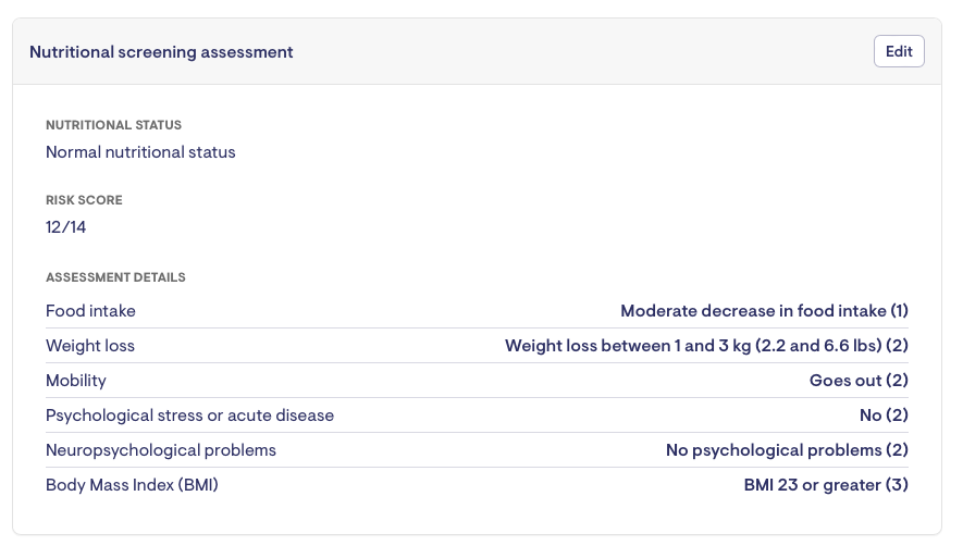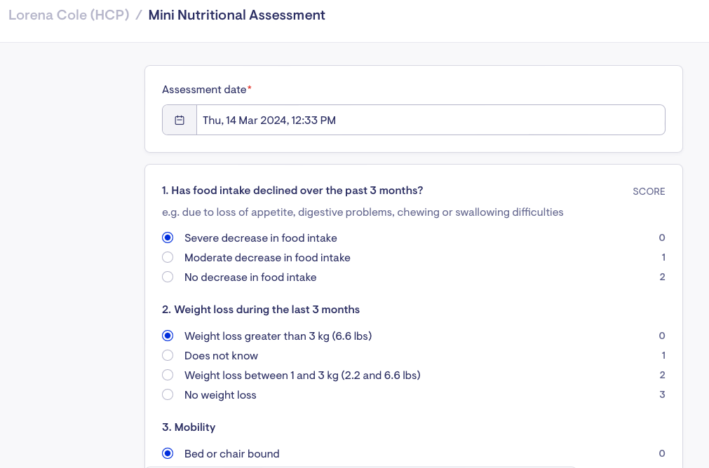 š¬ The Focal Assessment add-on is required to complete a Mini Nutritional Assessment.