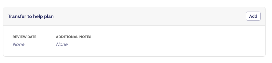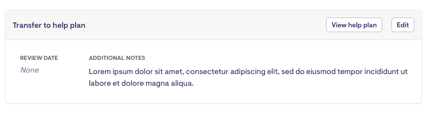 The completed assessment can be transferred to the clientās Help Plan with additional notes and a review date.