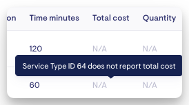 Columns irrelevant to the service type ID will now display 'N/A'.