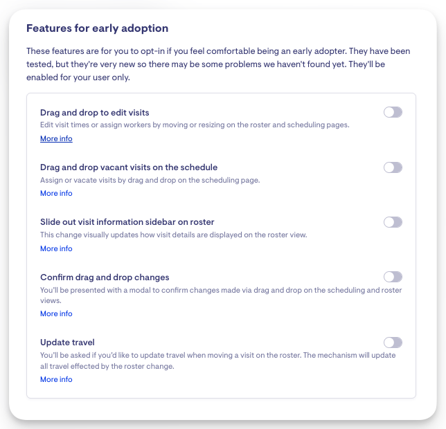 Early adopters are currently able to opt-in to some exciting new features including drag-and-drop functionality in the Scheduling, Helper, and Member Roster calendar views.